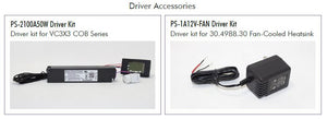 A specially designed fan-cooled heatsink ensures temperature and performance stability, and an optional LED driver kit (dimmable option) and fan power supply can be provided for a fully equipped system kit.