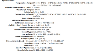 The IR-2100/2101 extended area blackbody systems have a 2 inch square emitting surface. The 0.375" Thick solid Copper Emitter plate provides superior uniformity and energy emission. A proprietary High Emissivity Black Coating provides >0.95 uniform Emissivity from 0.8 to 30 um. A Type "T" Thermocouple is embedded in the emitter plate to allow independent monitoring and calibration of the surface temperature. The IR-2100 series offers stability and uniformity comparable to competitive systems.